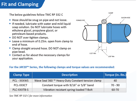 - Clamp straight around hose. DO NOT clamp on pipe bead.