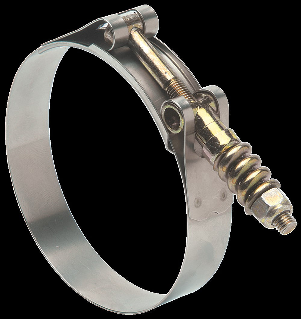 Spring Loaded T-Bolt clamps provide uniform sealing pressure for a positive, reliable seal. Designed for use in high vibration and large diameter applications common in heavy trucks, industrial machinery, off-road equipment, agricultural irrigation and machinery.